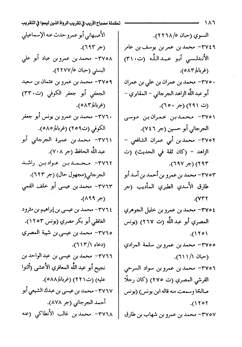 كتاب مصباح الأريب في تقريب الرواة الذين ليسوا في تقريب التهذيب (اسم الجزء: 4)