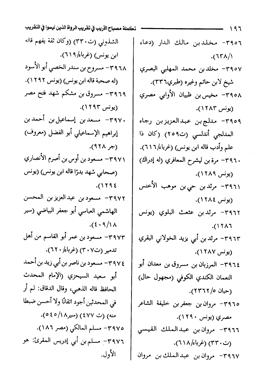 كتاب مصباح الأريب في تقريب الرواة الذين ليسوا في تقريب التهذيب (اسم الجزء: 4)