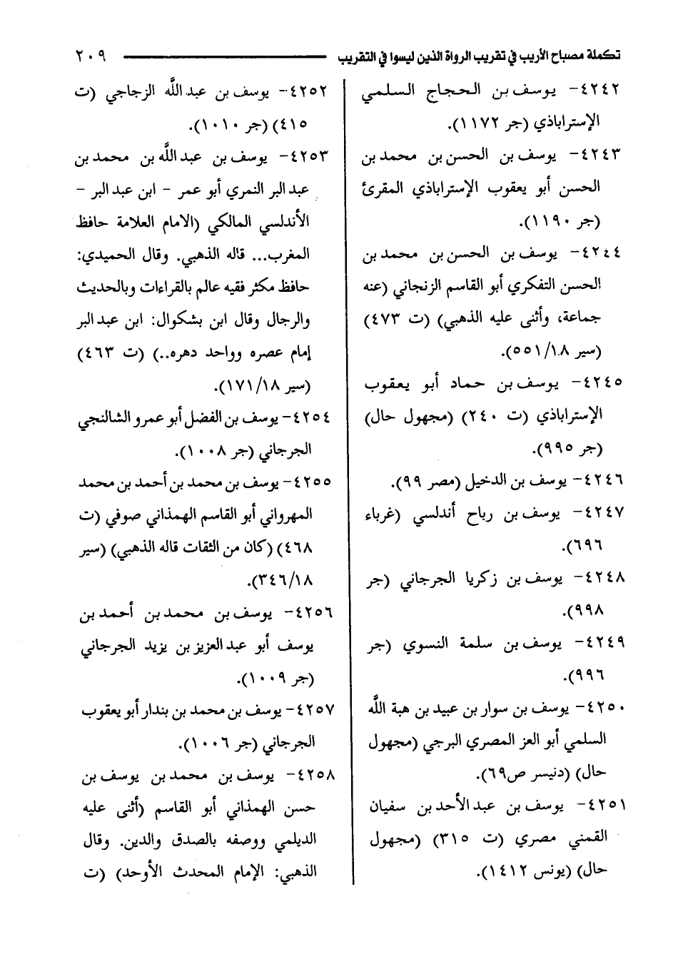 4242 - يوسف بن الحجاج السلمي الإستراباذي (جر 1172).