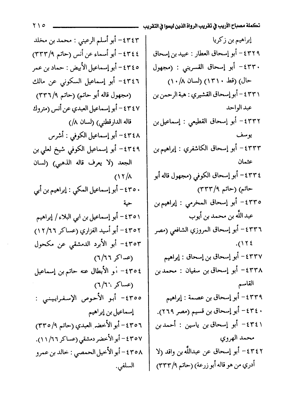 كتاب مصباح الأريب في تقريب الرواة الذين ليسوا في تقريب التهذيب (اسم الجزء: 4)