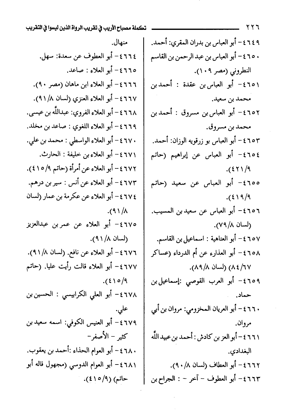 كتاب مصباح الأريب في تقريب الرواة الذين ليسوا في تقريب التهذيب (اسم الجزء: 4)