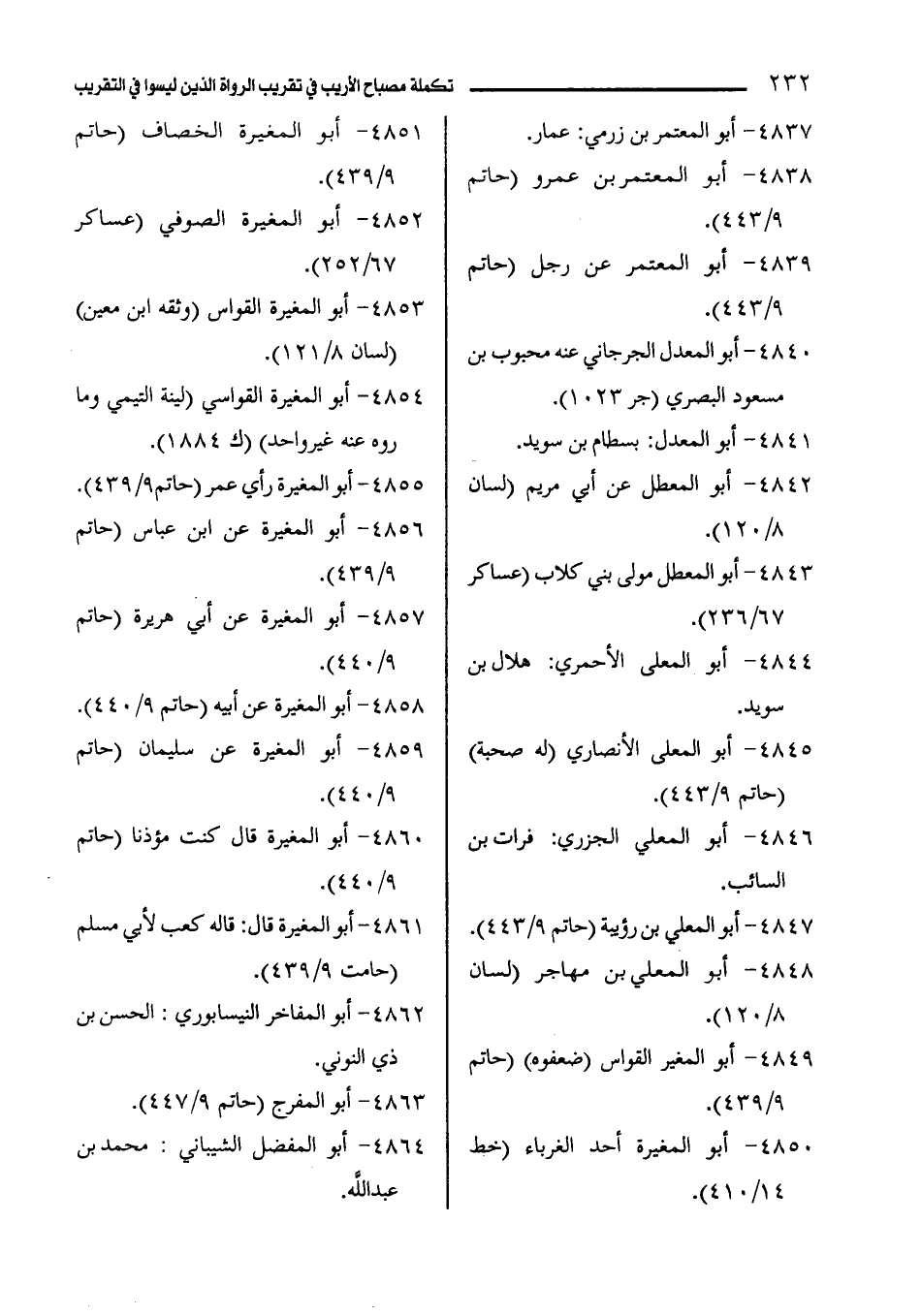 كتاب مصباح الأريب في تقريب الرواة الذين ليسوا في تقريب التهذيب (اسم الجزء: 4)