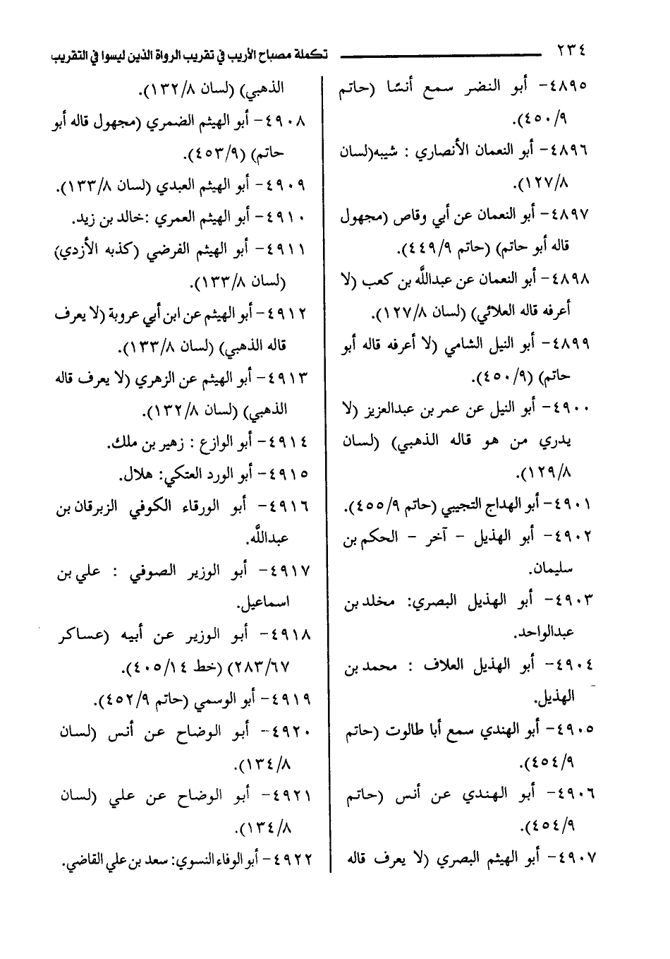 كتاب مصباح الأريب في تقريب الرواة الذين ليسوا في تقريب التهذيب (اسم الجزء: 4)