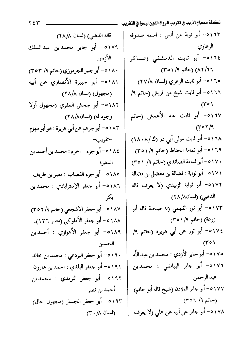 5164 - أبو ثابت الدمشقي (عساكر 66/ 82) (حاتم 9/ 351).