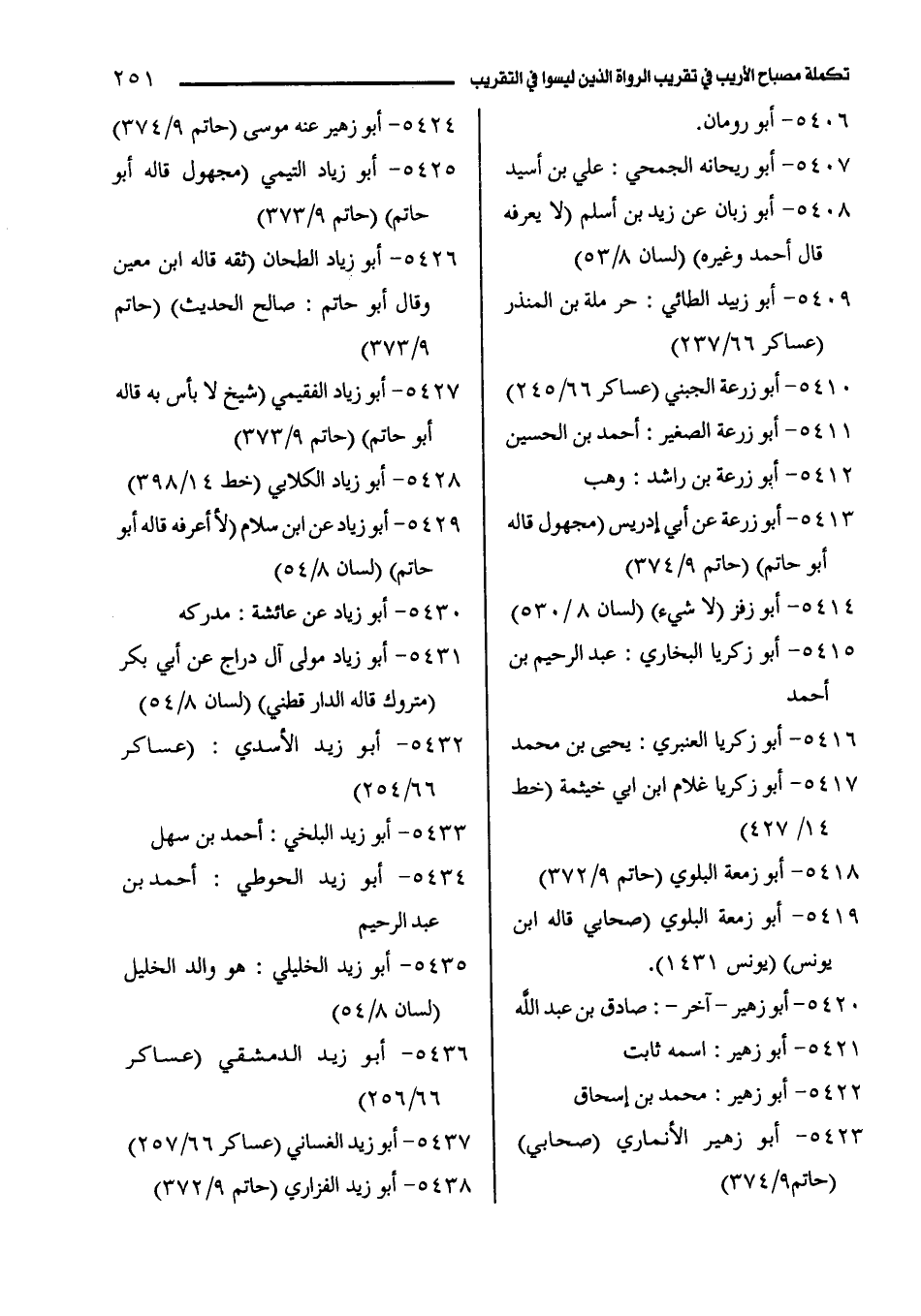 5429 - أبو زياد عن ابن سلام (لا أعرفه قاله أبو حاتم) (لسان 8/ 54).