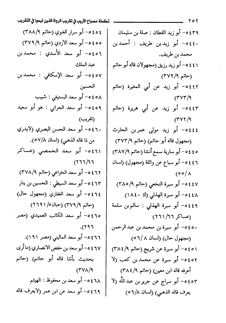 كتاب مصباح الأريب في تقريب الرواة الذين ليسوا في تقريب التهذيب (اسم الجزء: 4)