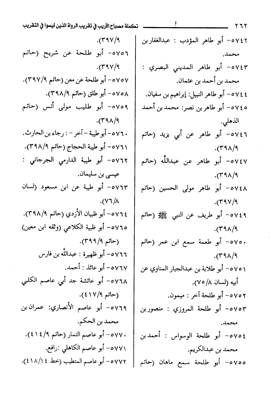 5749 - أبو طريف عن النبي - صلى الله عليه وسلم - (حاتم 9/ 398).