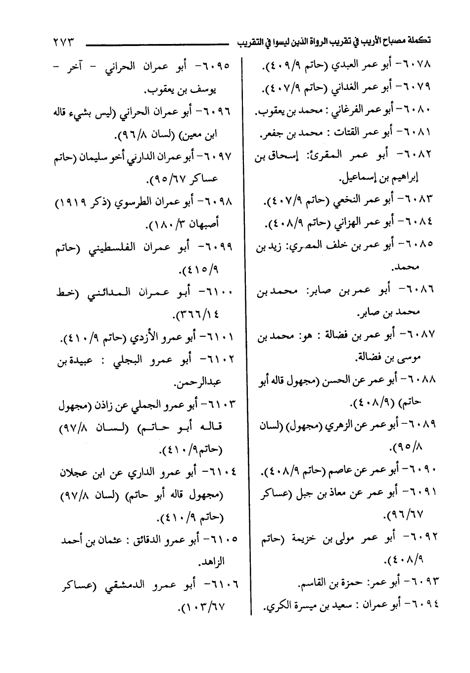 كتاب مصباح الأريب في تقريب الرواة الذين ليسوا في تقريب التهذيب (اسم الجزء: 4)