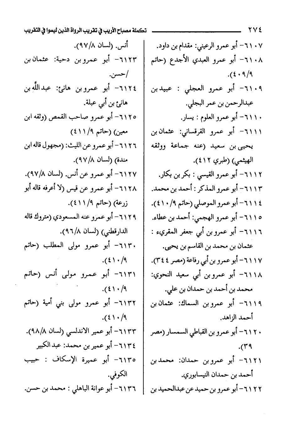 كتاب مصباح الأريب في تقريب الرواة الذين ليسوا في تقريب التهذيب (اسم الجزء: 4)