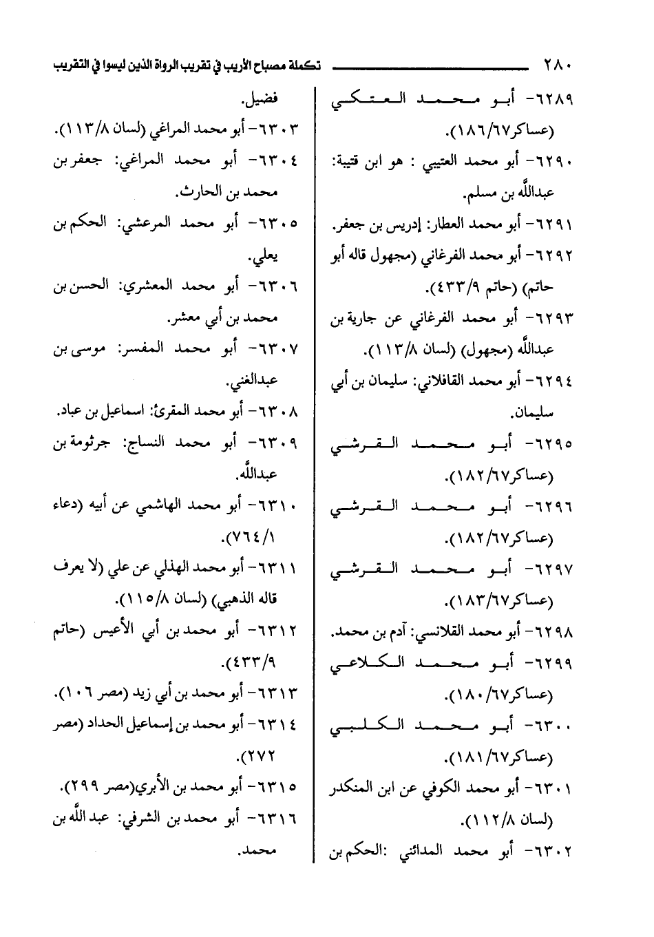 كتاب مصباح الأريب في تقريب الرواة الذين ليسوا في تقريب التهذيب (اسم الجزء: 4)