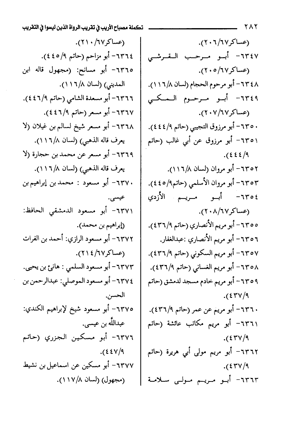 كتاب مصباح الأريب في تقريب الرواة الذين ليسوا في تقريب التهذيب (اسم الجزء: 4)