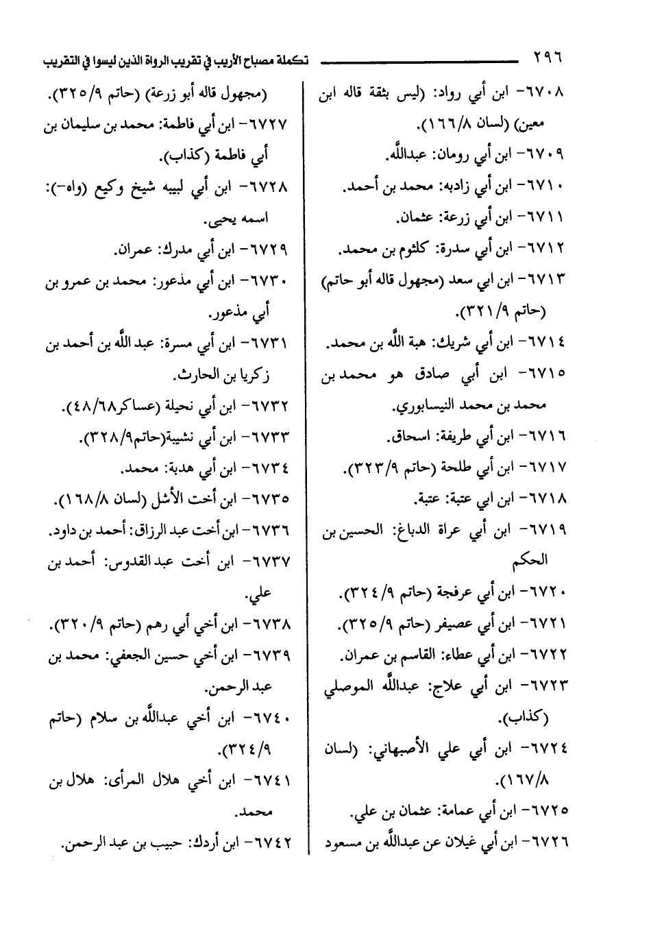 كتاب مصباح الأريب في تقريب الرواة الذين ليسوا في تقريب التهذيب (اسم الجزء: 4)