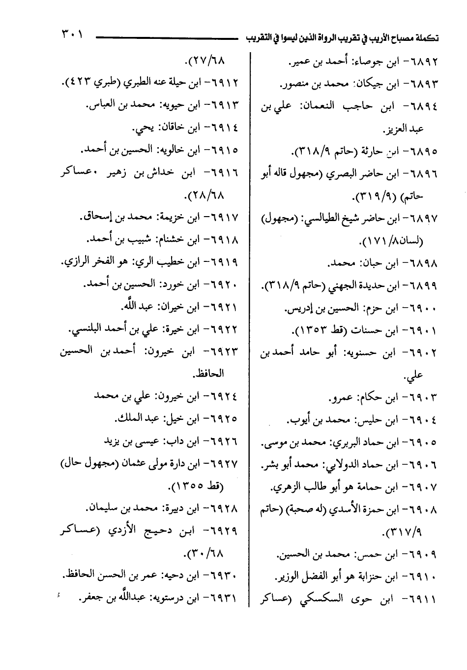 6896 - ابن حاضر البصري (مجهول قاله أبو حاتم) (9/ 319).