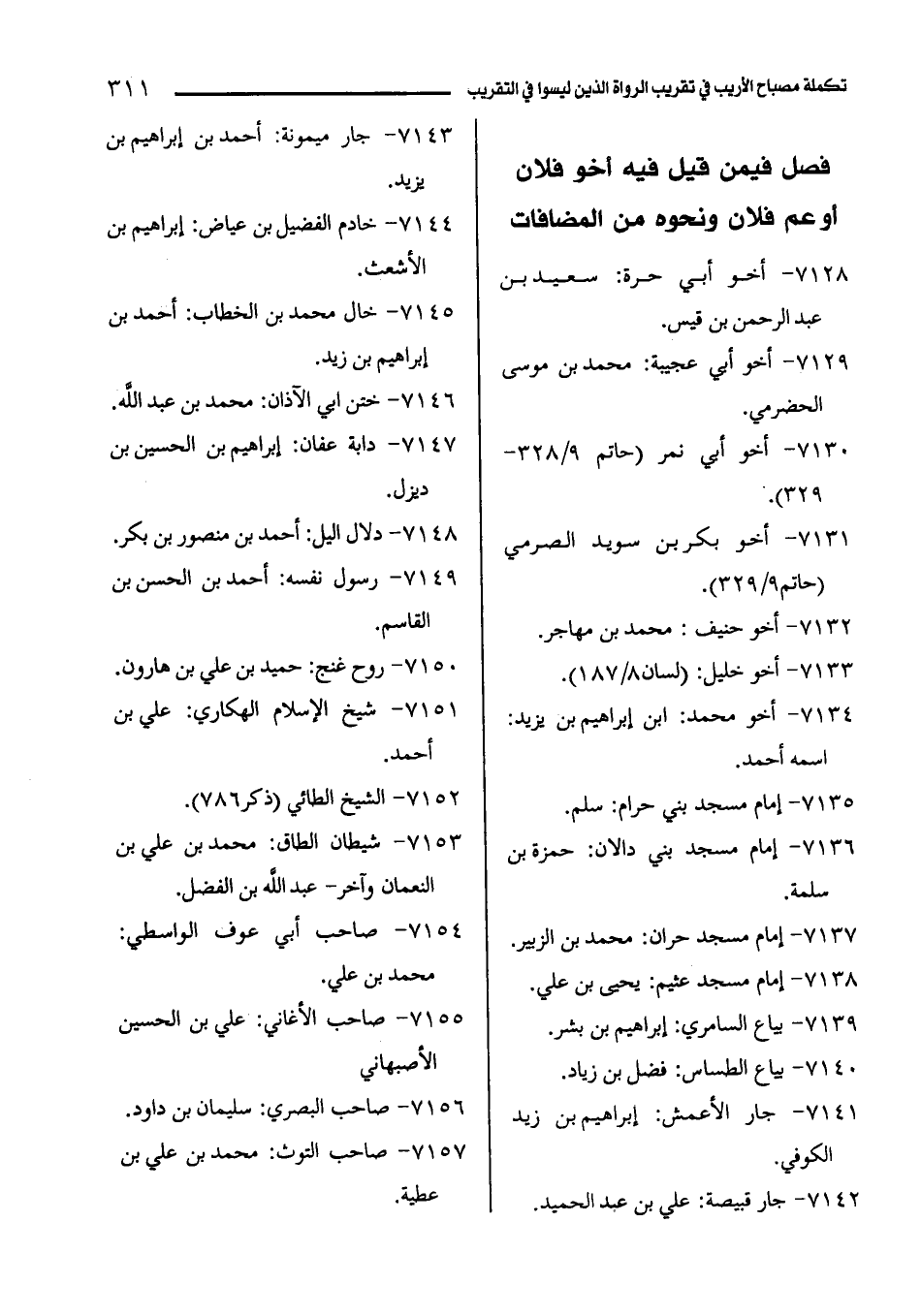 فصل فيمن قيل فيه أخو فلان أو عم فلان ونحوه من المضافات