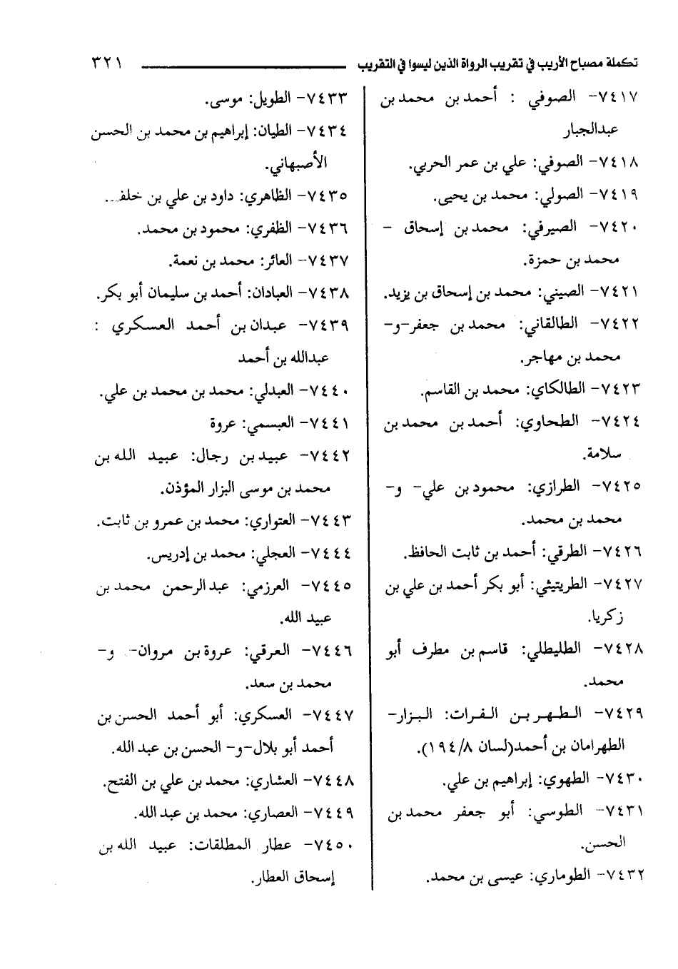 كتاب مصباح الأريب في تقريب الرواة الذين ليسوا في تقريب التهذيب (اسم الجزء: 4)