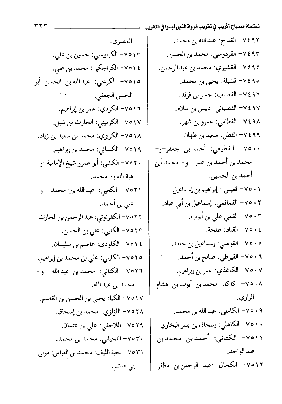 كتاب مصباح الأريب في تقريب الرواة الذين ليسوا في تقريب التهذيب (اسم الجزء: 4)