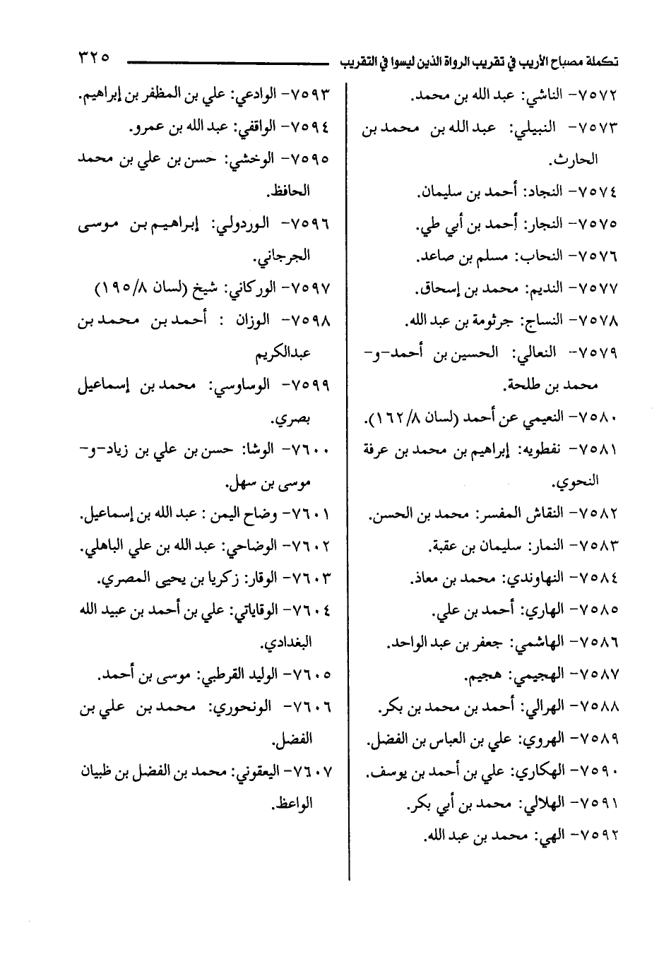 كتاب مصباح الأريب في تقريب الرواة الذين ليسوا في تقريب التهذيب (اسم الجزء: 4)