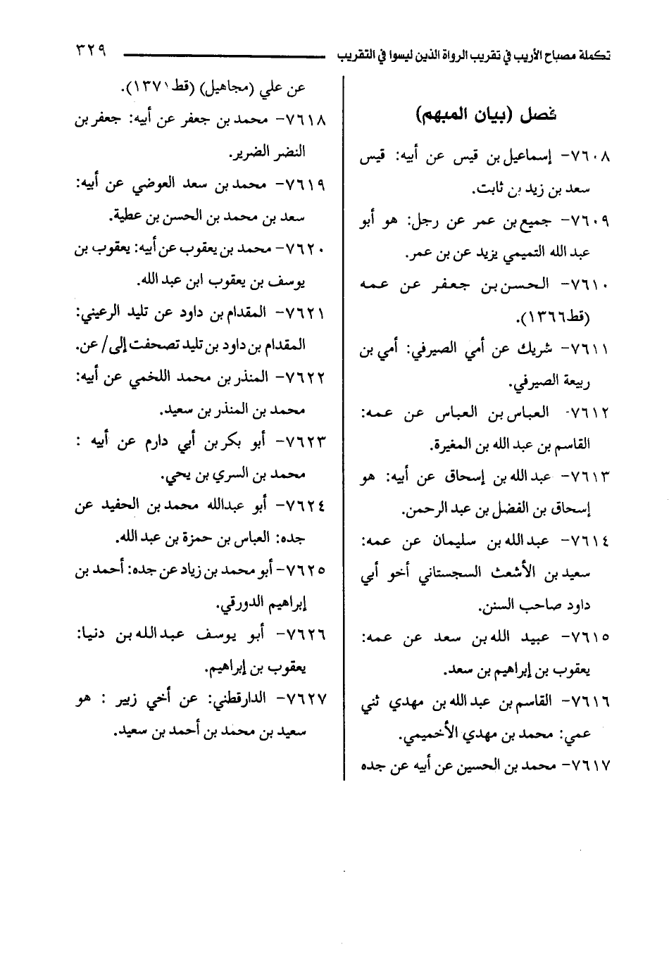 7617 - محمد بن الحسين عن أبيه عن جده عن علي (مجاهيل) (قط 137).