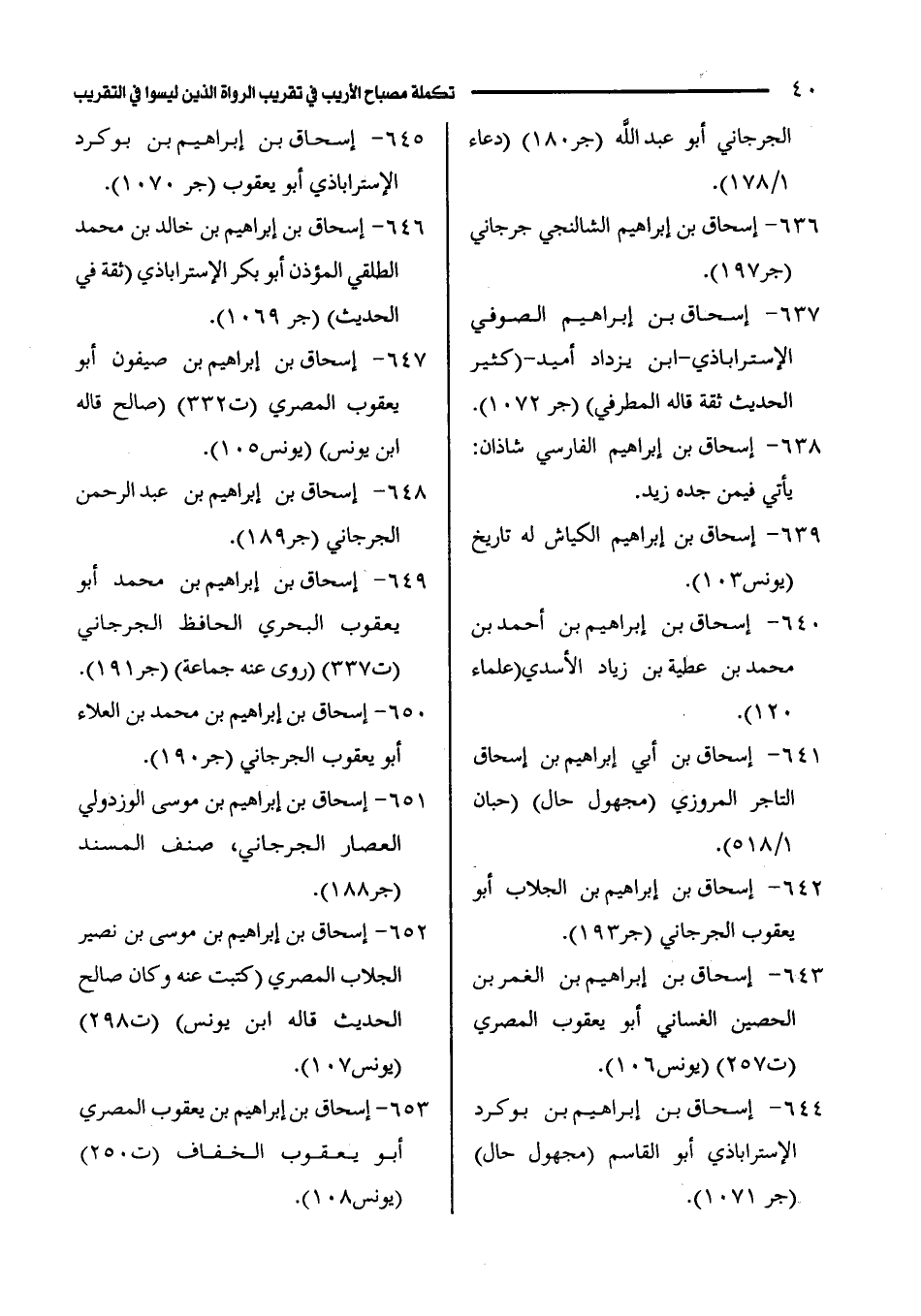650 - إسحاق بن إبراهيم بن محمَّد بن العلاء أبو يعقوب الجرجاني (جر 190).