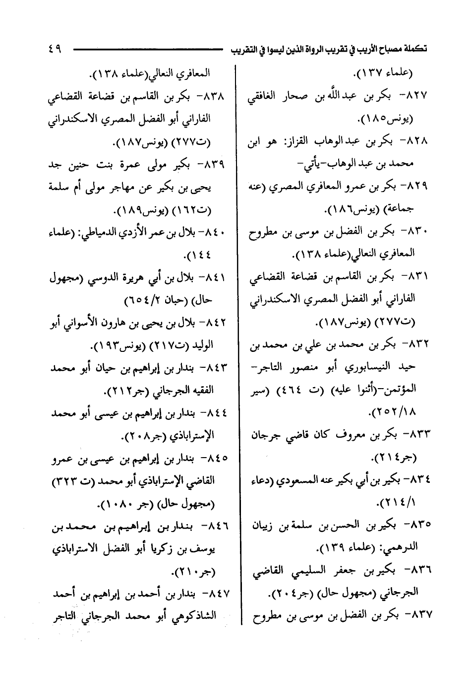 829 - بكر بن عمرو المعافري المصري (عنه جماعة) (يونس 186).
