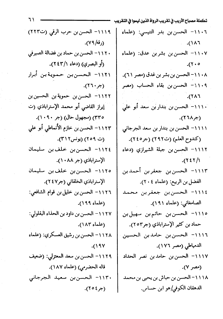 1106 - الحسن بن بدر التنيسي: (علماء 186).