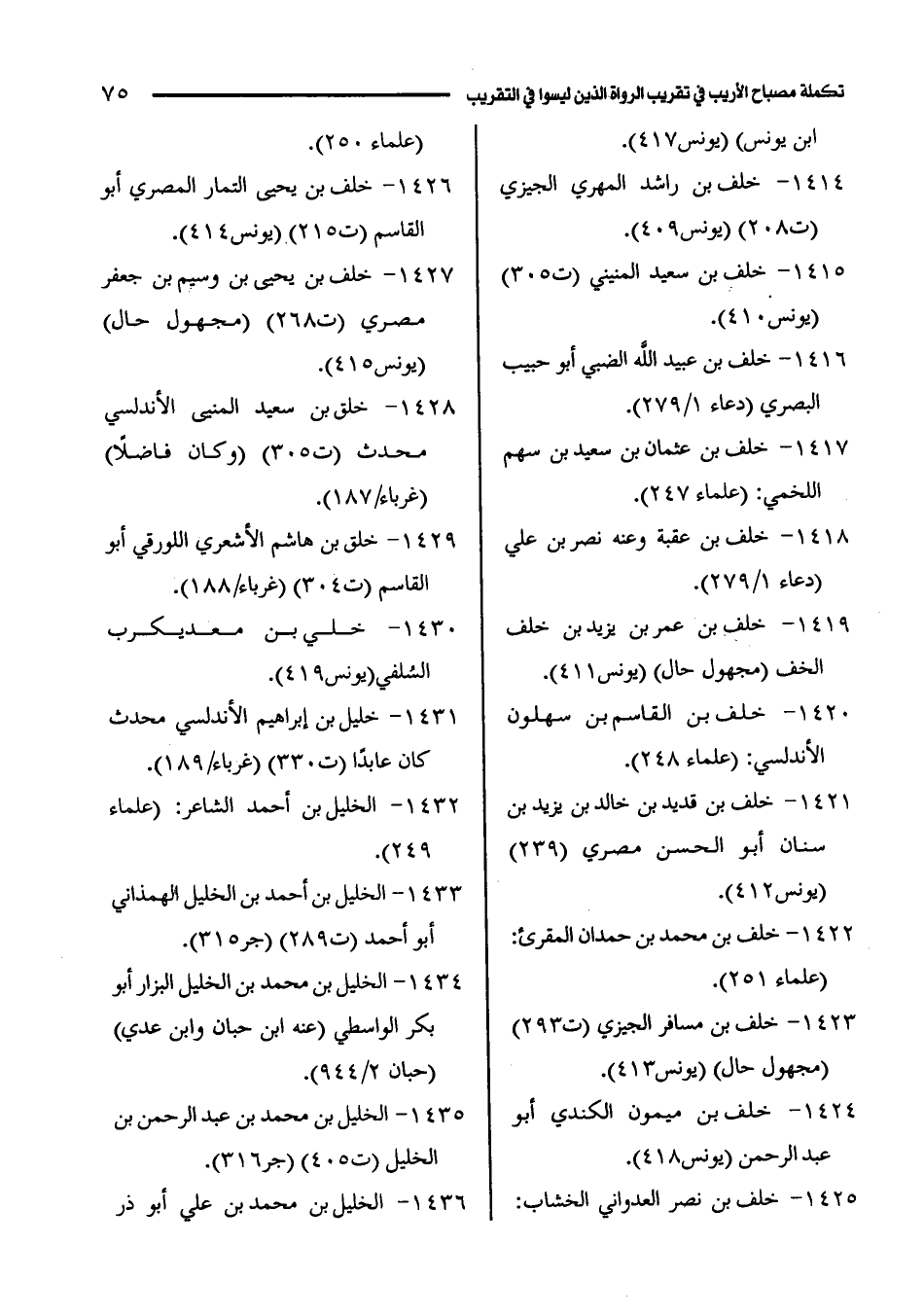 1435 - الخليل بن محمد بن عبد الرحمن بن الخليل (ت 405) (جر 316).