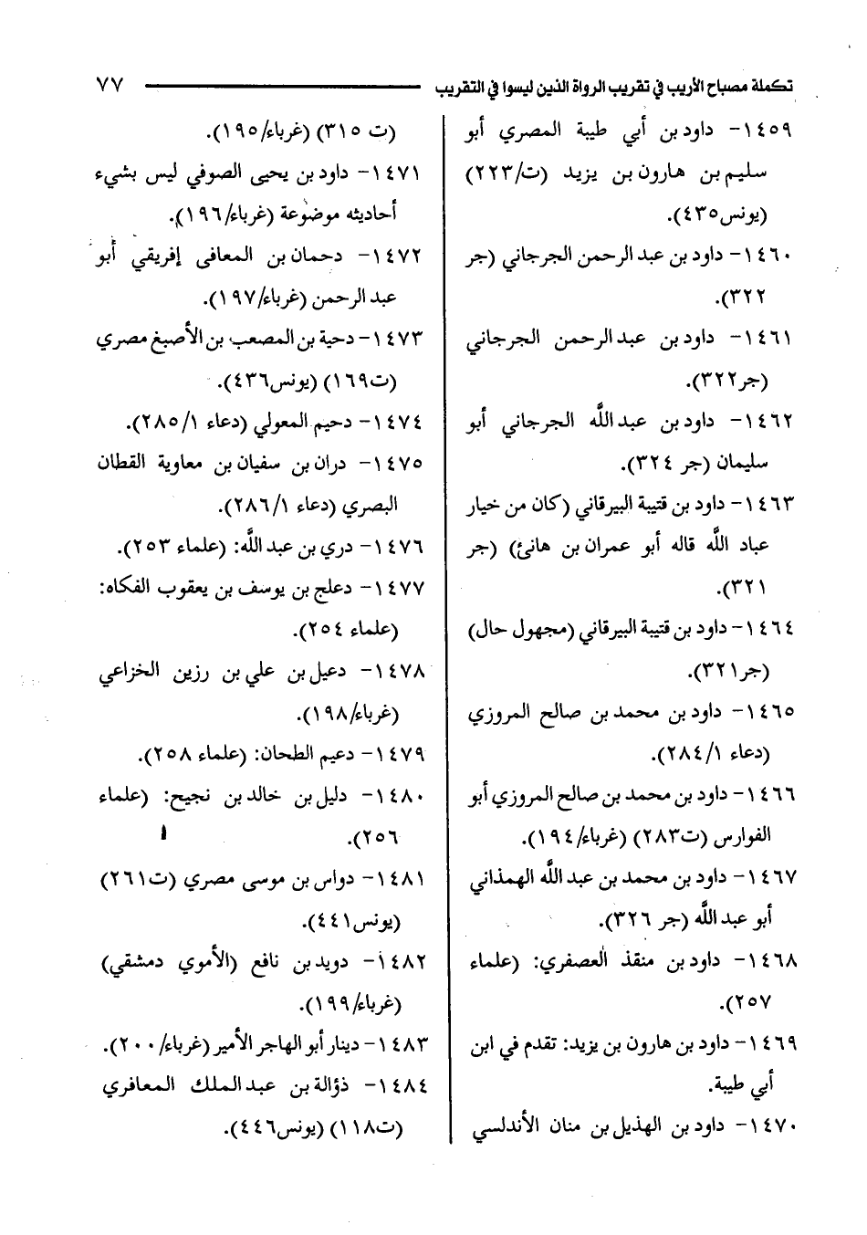 1463 - داود بن قتيبة البيرقاني (كان من خيار عباد الله قاله أبو عمران بن هانئ) (جر 321).