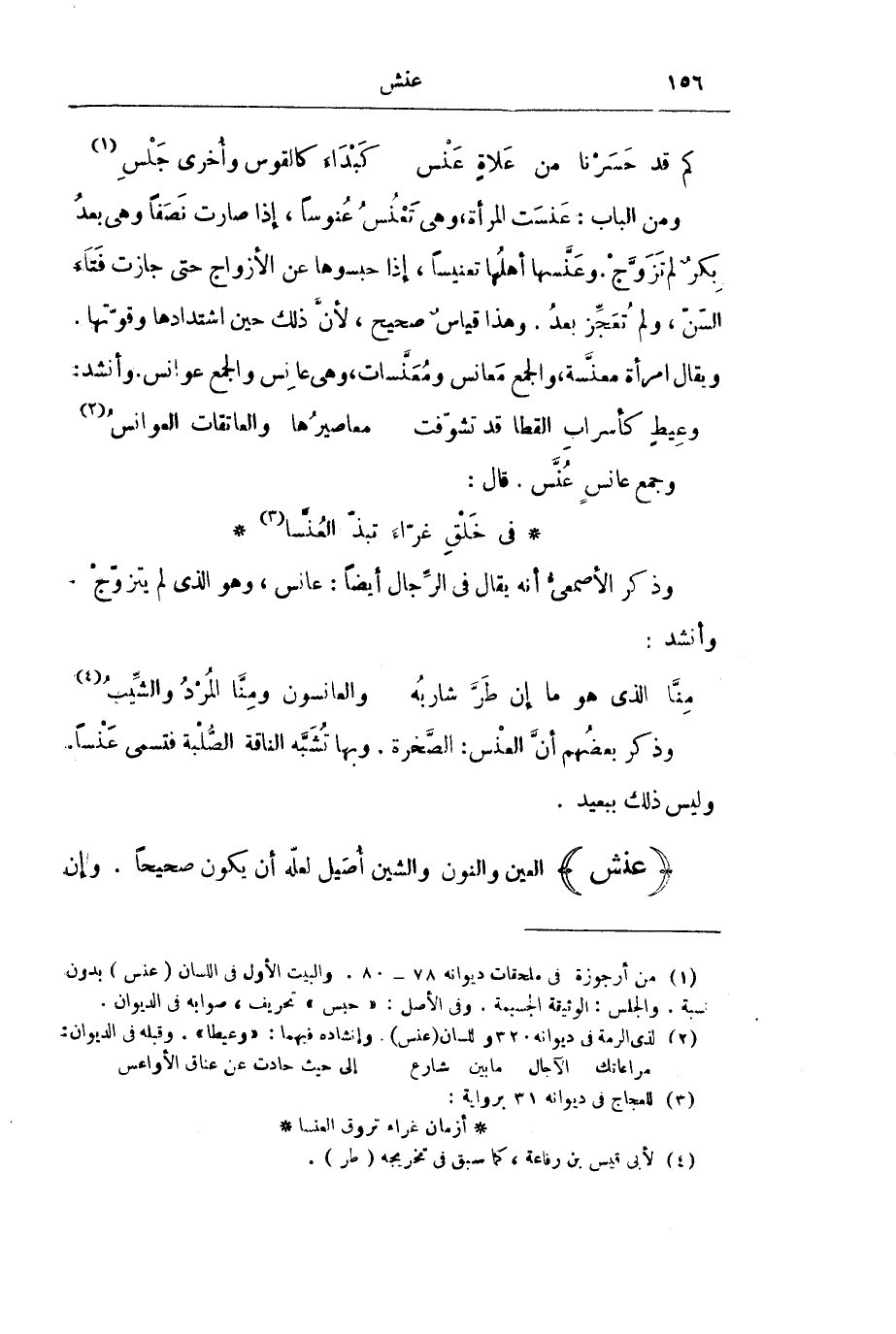 وَجَمْعُ عَانِسٍ عُنَّسٌ. قَالَ: