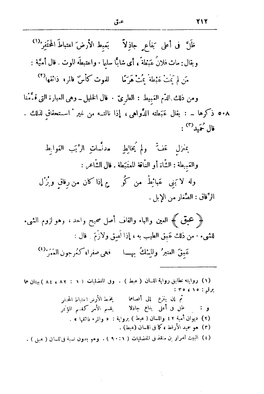 وَمِنْ ذَلِكَ الدَّمُ الْعَبِيطُ: الطَّرِيُّ. قَالَ الْخَلِيلُ - وَهِيَ الْعِبَارَةُ الَّتِي قَدَّمْنَا ذِكْرَهَا -: يُقَالُ عَبَطَتْهُ الدَّوَاهِي، إِذَا نَالَتْهُ مِنْ غَيْرِ اسْتِحْقَاقٍ لِذَلِكَ. قَالَ حُمَيْدٌ: