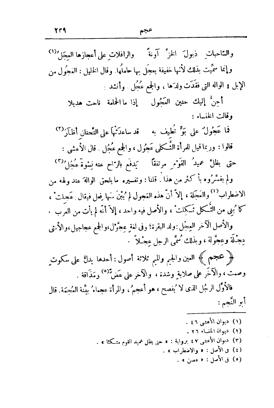 فَالْأَوَّلُ الرَّجُلُ الَّذِي لَا يُفْصِحُ، هُوَ أَعْجَمُ، وَالْمَرْأَةُ عَجْمَاءُ بَيِّنَةُ الْعُجْمَةِ. قَالَ أَبُو النَّجْمِ: