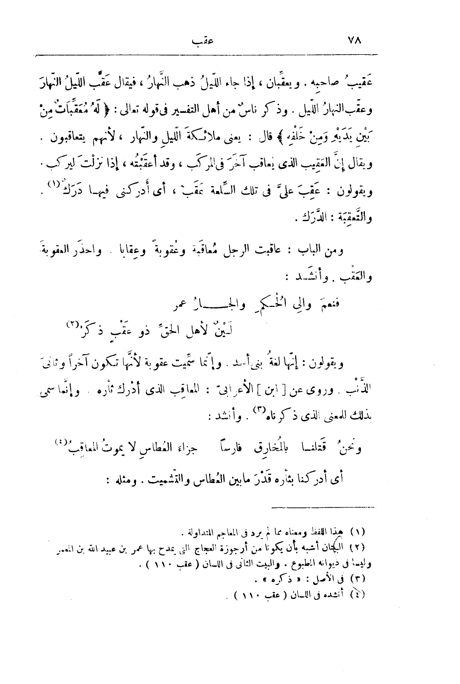 وَيَقُولُونَ: إِنَّهَا لُغَةُ بَنِي أَسَدٍ. وَإِنَّمَا سُمِّيَتْ عُقُوبَةً لِأَنَّهَا تَكُونُ آخِرًا وَثَانِيَ الذَّنْبِ. وَرُوِيَ عَنْ [ابْنِ] الْأَعْرَابِيِّ: الْمُعَاقِبُ الَّذِي أَدْرَكَ ثَأْرَهُ. وَإِنَّمَا سُمِّيَ بِذَلِكَ لِلْمَعْنَى الَّذِي ذَكَرْنَاهُ. وَأَنْشَدَ: