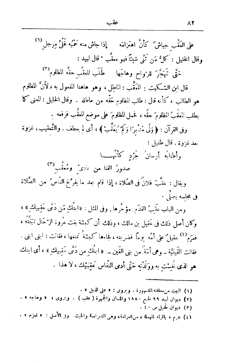 وَقَالَ الْخَلِيلُ: كُلُّ مَنْ ثَنَّى شَيْئًا فَهُوَ مُعَقِّبٌ قَالَ لَبِيدٌ: