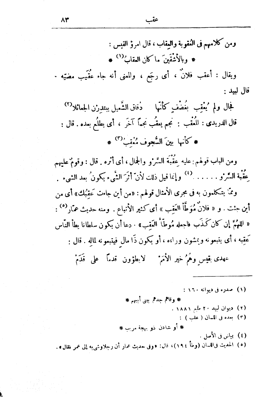 وَيُقَالُ: أَعْقَبَ فُلَانٌ، أَيْ رَجَعَ، وَالْمَعْنَى أَنَّهُ جَاءَ عُقَيْبَ مُضِيِّهِ. قَالَ لَبِيدٌ: