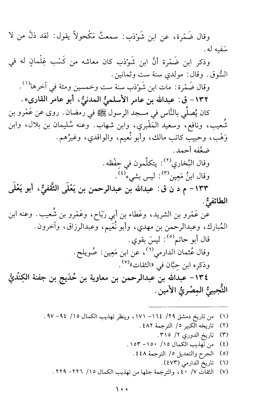 133 - م د ن ق: عَبْد اللَّهِ بْن عَبْد الرحمن بْن يعلى الثَّقفيُّ أَبُو يَعْلَى الطائفيُّ. [الوفاة: 151 - 160 ه]