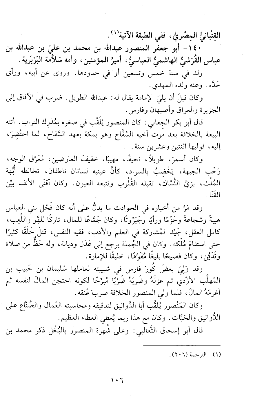 140 - أَبُو جعفر المنصور: عَبْدِ اللَّهِ بْنِ مُحَمَّدِ بْنِ عَلِيِّ بْنِ عَبْد الله بْن عباس القرشيُّ الهاشميُّ العباسيُّ، [الوفاة: 151 - 160 ه]