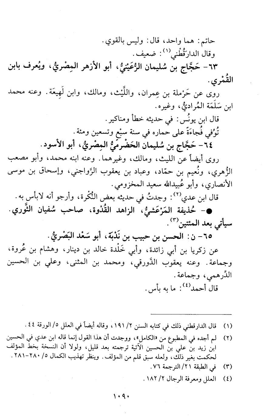 63 - حَجَّاج بْن سُليمان الرُّعَيْنيّ، أبو الأزهر الْمَصْرِيّ، ويُعرف بابن القَمْريّ. [الوفاة: 191 - 200 ه]