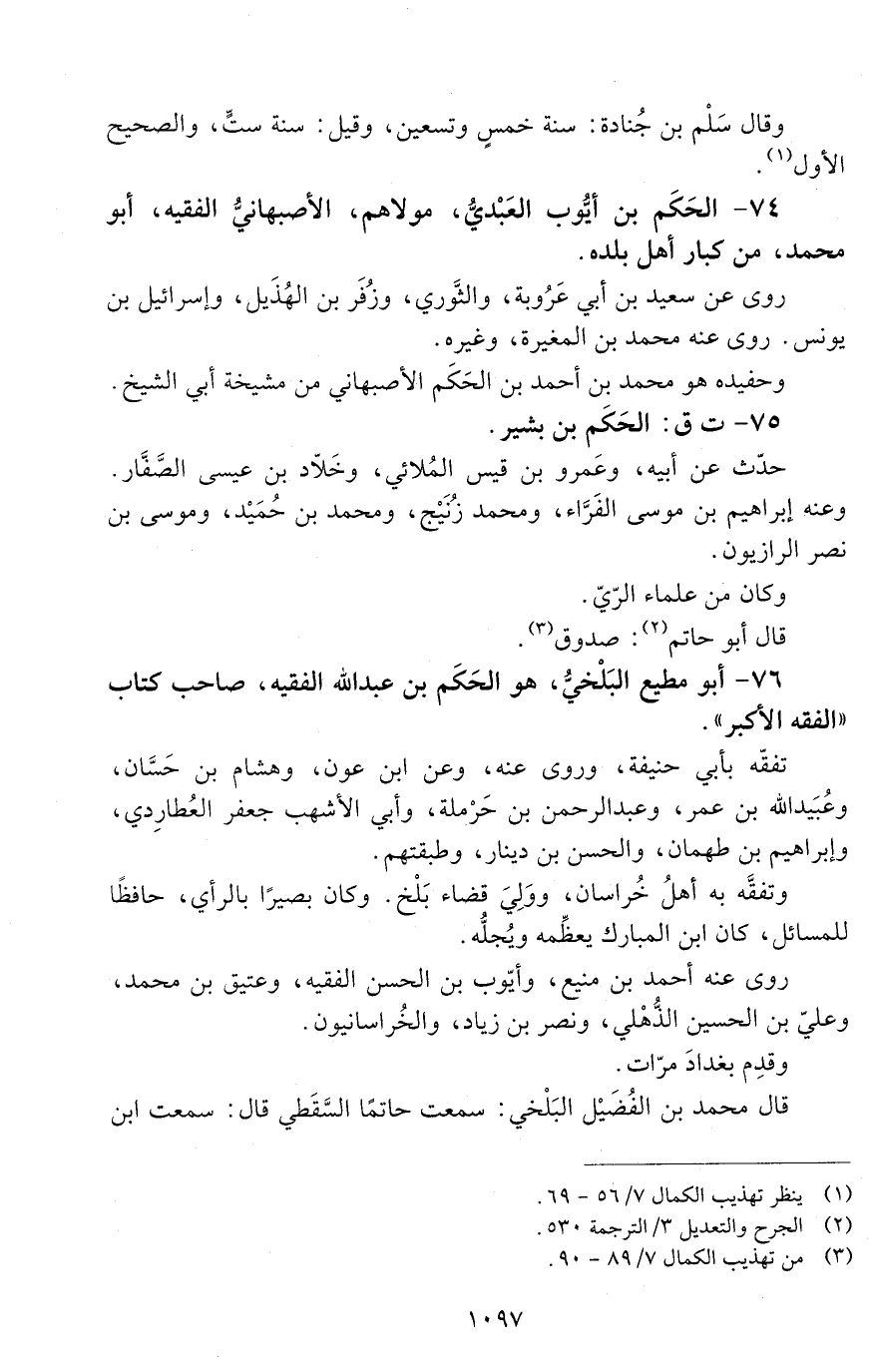 74 - الحَكَم بْن أيّوب العبْديّ مولاهم، الأصبهانيُّ الفقيه، أبو محمد، [الوفاة: 191 - 200 ه]