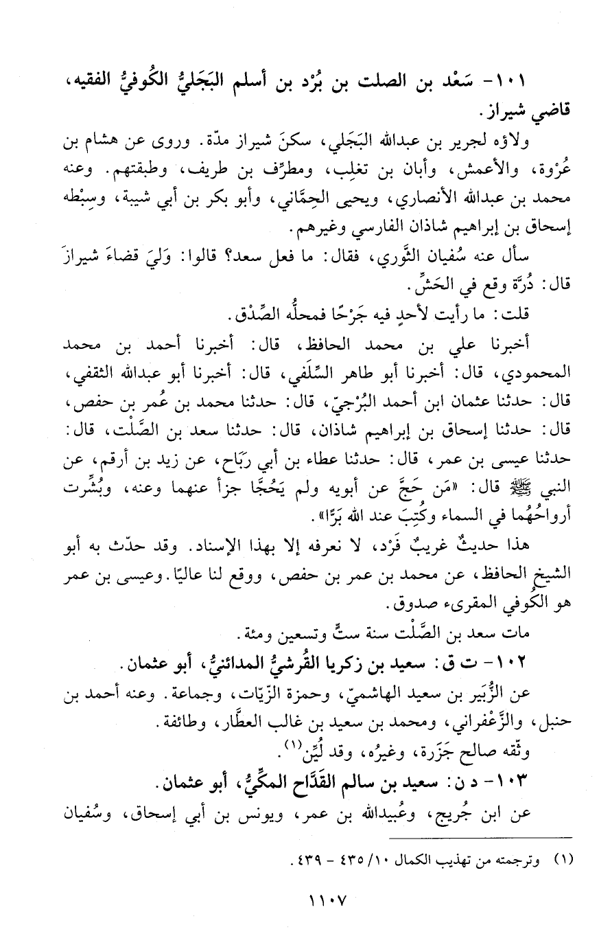 101 - سعْد بْن الصَّلْت بْن بُرْد بْن أسلم البَجَليّ الكُوفيُّ الفقيه، [الوفاة: 191 - 200 ه]