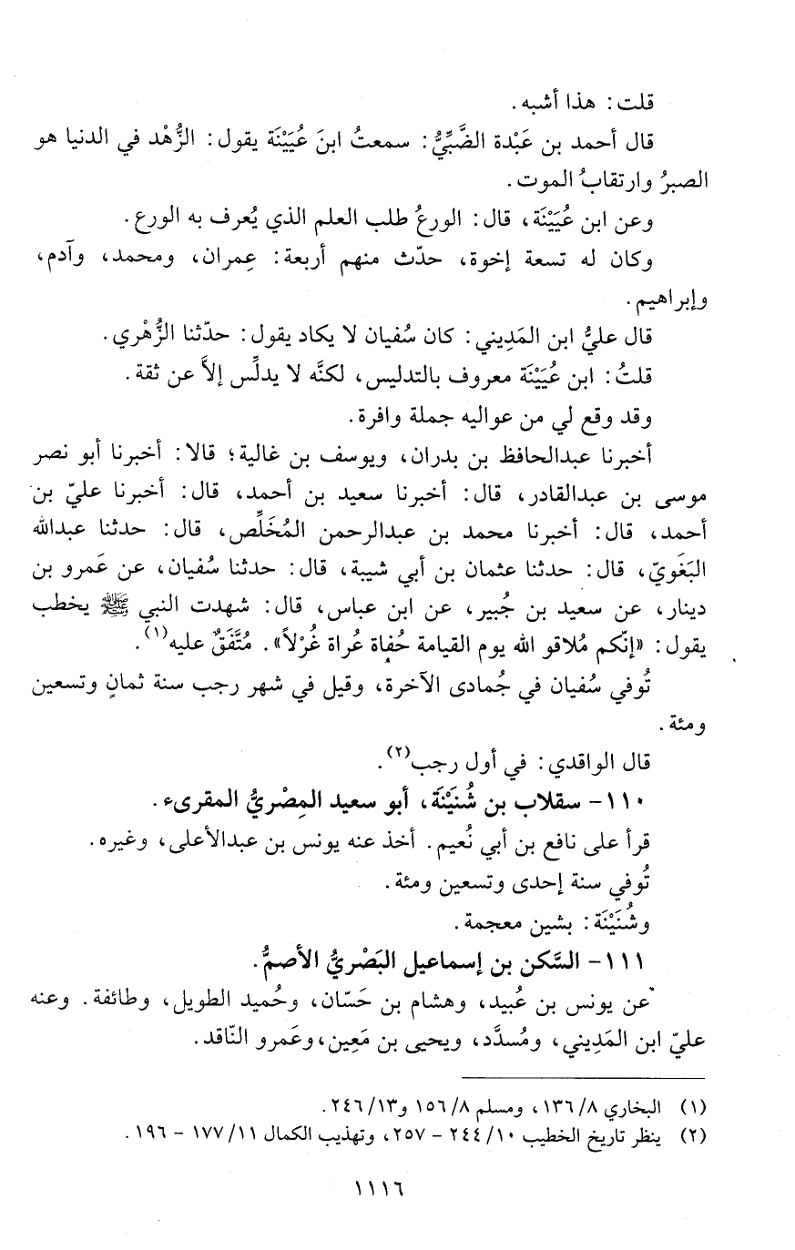 وَعَنْهُ: علي ابن المَدِينيّ، ومُسدّد، ويحيى بْن مَعِين، وعَمْرو النّاقد. -[1117]-