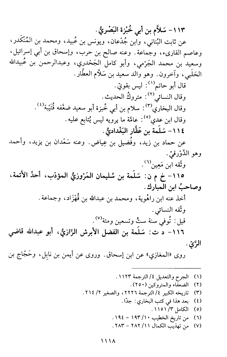 116 - د ت: سَلَمَةُ بْن الفضل الأبرش الرّازيُّ، أبو عَبْد الله، [الوفاة: 191 - 200 ه]