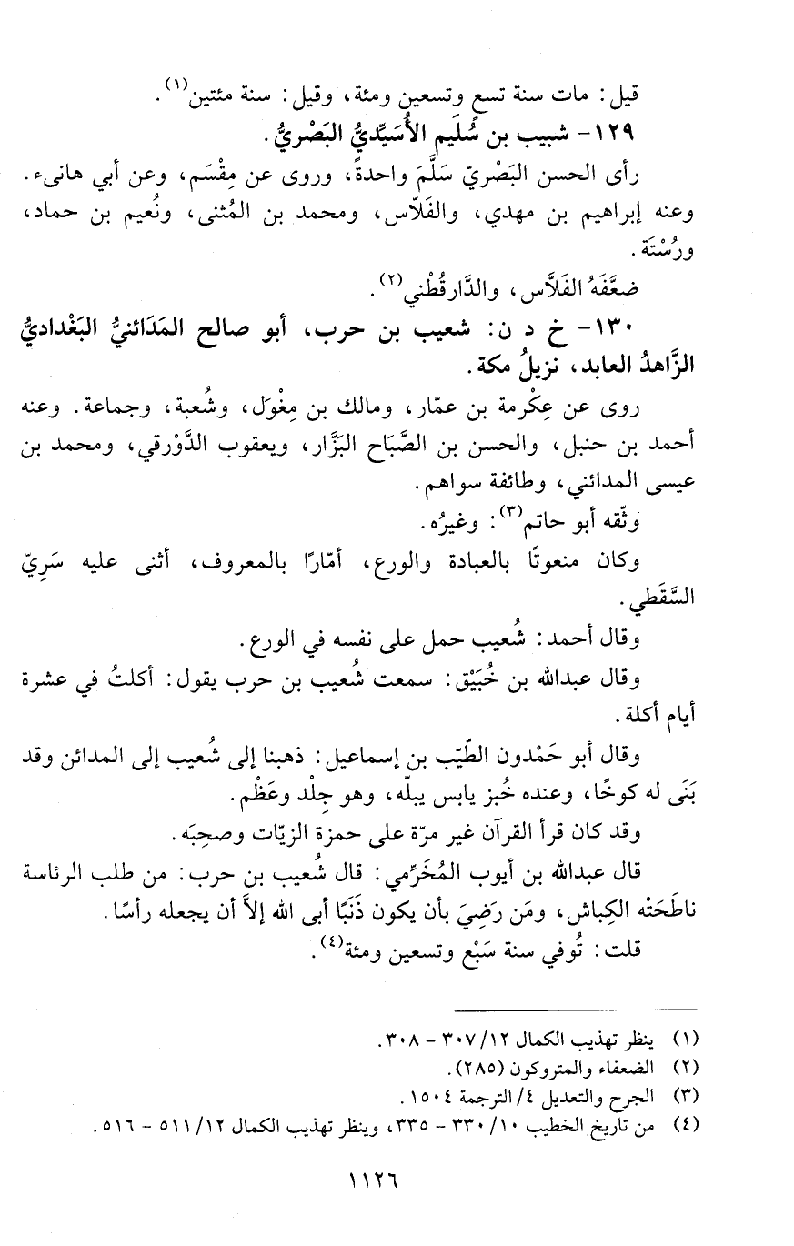 130 - خ د ن: شعيب بْن حرب، أبو صالح المدائنيُّ البغداديُّ الزَّاهد العابد، [الوفاة: 191 - 200 ه]