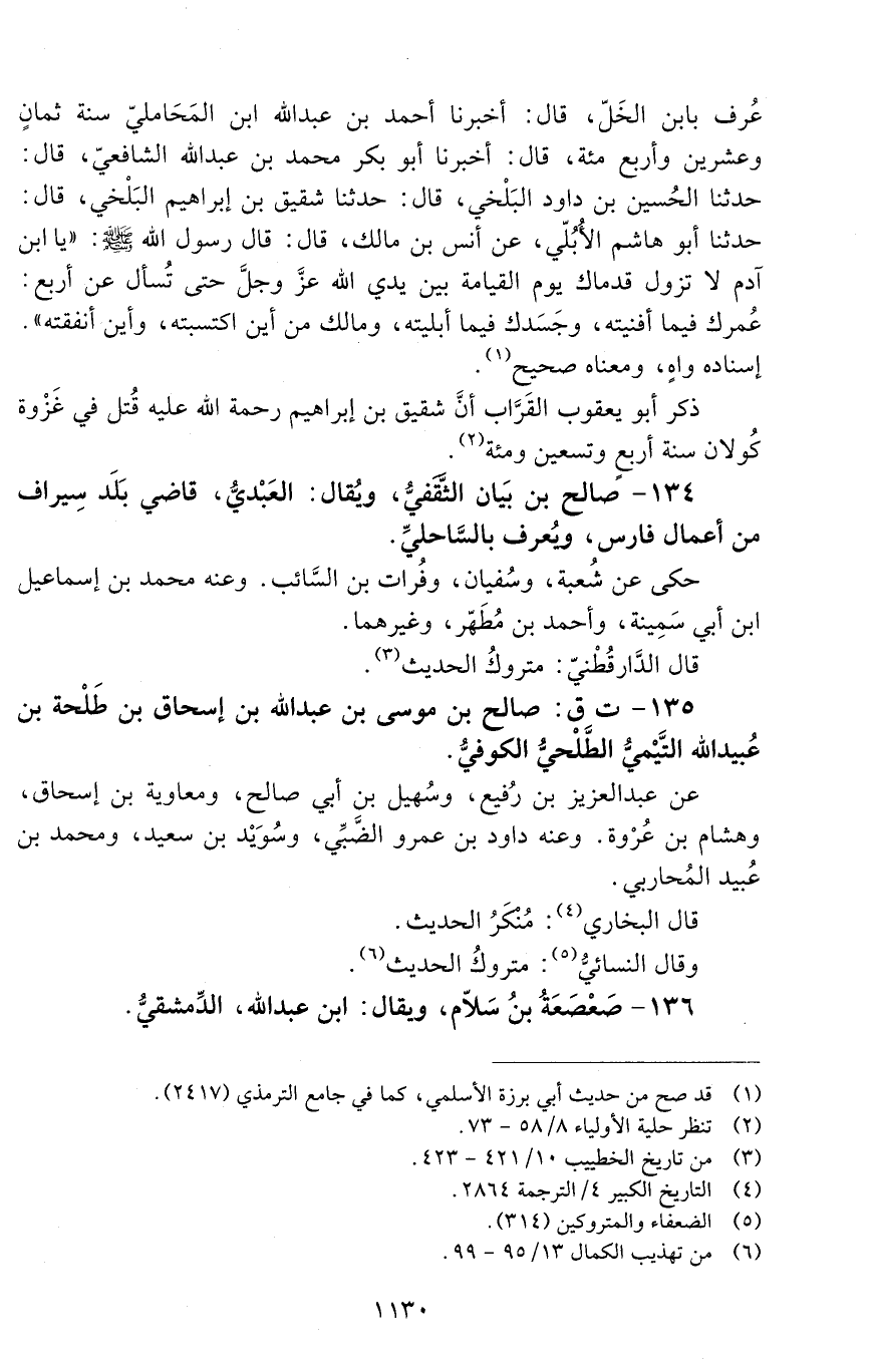 135 - ت ق: صالح بْن مُوسَى بْنُ عَبْدِ اللَّهِ بْنُ إِسْحَاقَ بْنِ طَلْحَةَ بْنِ عُبَيْدِ اللَّهِ التَّيميّ الطَّلْحيّ الكوفي [الوفاة: 191 - 200 ه]