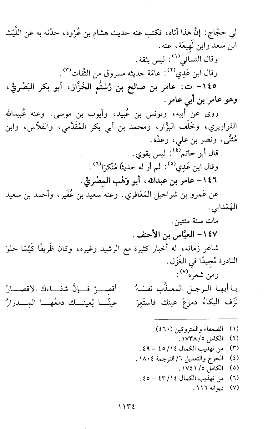 145 - ت: عامر بْن صالح بْن رُسْتُم الخَزَّاز، أبو بَكْر البَصْريُّ، وهو عامر بن أبي عامر. [الوفاة: 191 - 200 ه]