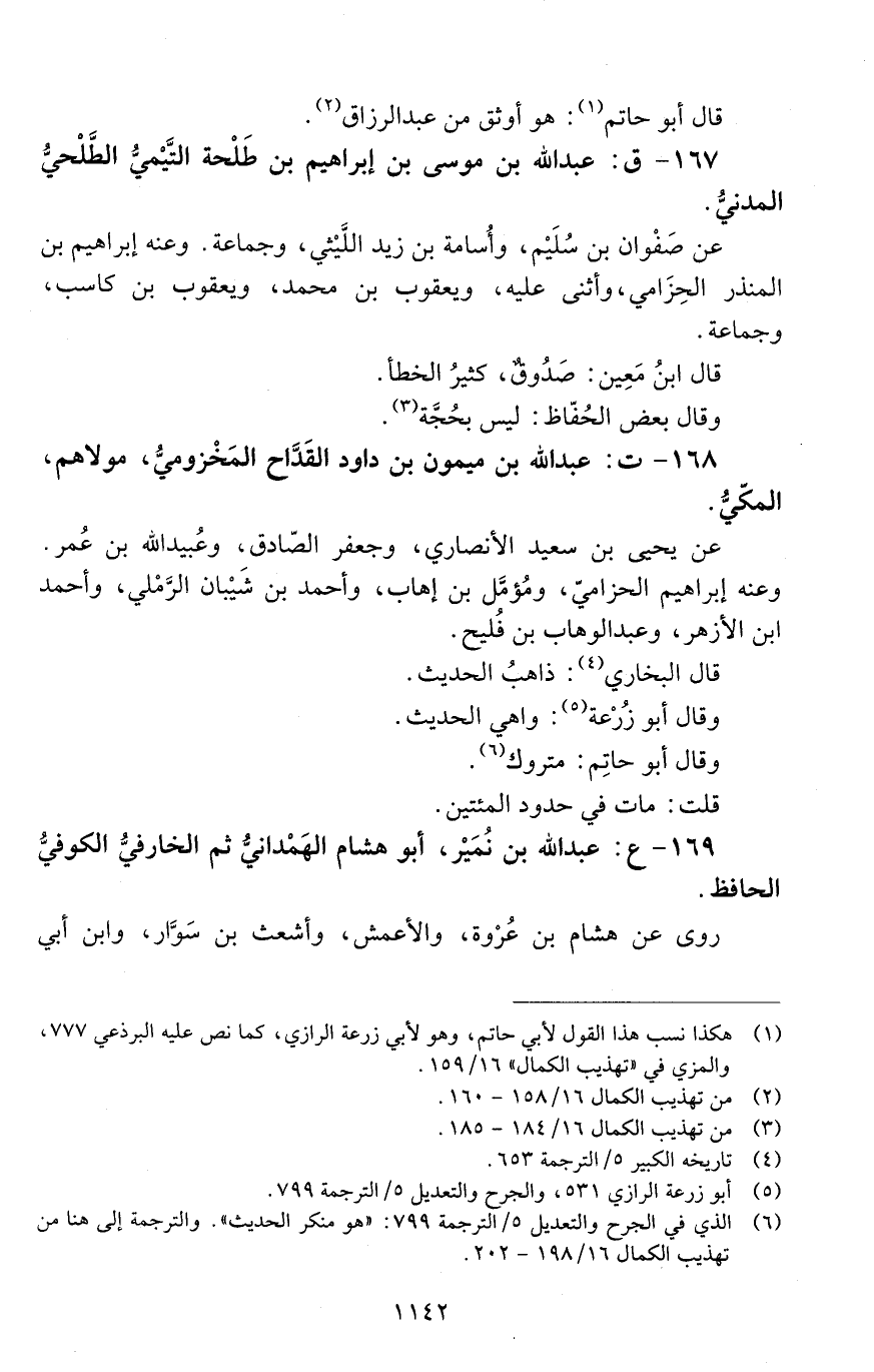 169 - ع: عَبْد الله بْن نُمَير، أبو هشام، الهمَدانيّ ثمّ الخارفيُّ، الكوفيُّ الحافظ. [الوفاة: 191 - 200 ه]