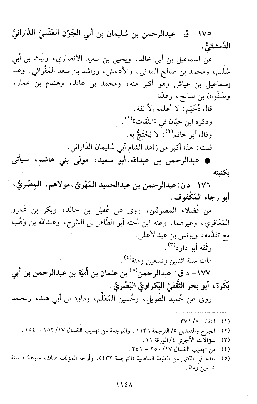 175 - ق: عَبْد الرَّحْمَن بْن سُليمان بْن أبي الْجَوْن العَنْسيُّ الدَّارانيُّ الدِّمشقيُّ. [الوفاة: 191 - 200 ه]