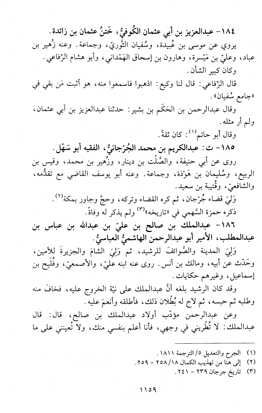 186 - عَبْدُ الْمَلِكِ بْنُ صَالِحِ بْنِ عَلِيِّ بْنِ عَبْد اللَّهِ بْن عَبَّاس بْن عَبْد الْمُطَّلِبِ الأمير أبو عَبْد الرَّحْمَن الهاشميُّ العباسيُّ. [الوفاة: 191 - 200 ه]