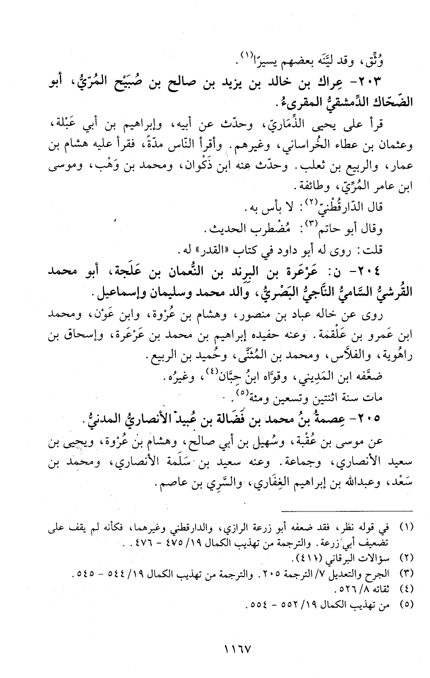 203 - عِراك بْن خَالِد بْن يزيد بْن صالح بْن صُبَيح المُرّيّ أبو الضَّحَّاك، الدِّمشقيُّ المقرئ. [الوفاة: 191 - 200 ه]