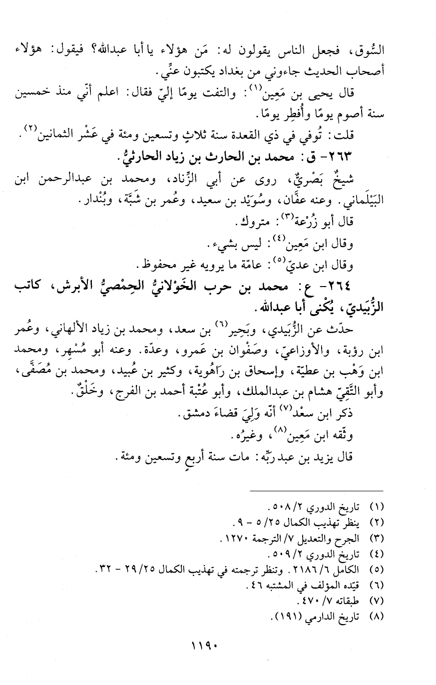 264 - ع: محمد بن حرب الخَوْلانيُّ الحِمْصيُّ الأبرش كاتب الزُّبَيْديّ، يُكَنَّى أبا عَبْد الله. [الوفاة: 191 - 200 ه]