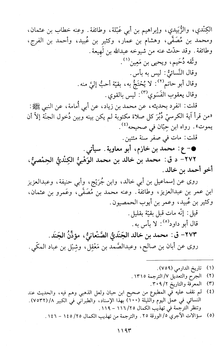 272 - د ق: محمد بْن خَالِد بْن محمد الوَهْبيّ الكِنْديّ الحِمْصيُّ [الوفاة: 191 - 200 ه]