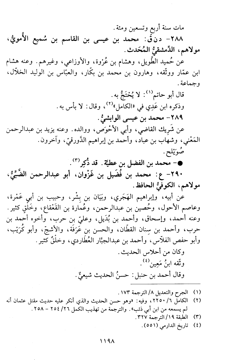 290 - ع: محمد بْن فُضَيْل بْن غَزْوان أبو عبد الرَّحْمَن الضَّبِّيُّ، مولاهم الكوفيُّ الحافظ. [الوفاة: 191 - 200 ه]